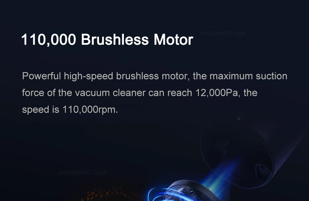 - [110,000 Brushless Motor]Powerful high-speed brushless motor, the maximum suction force of the vacuum cleaner can reach 12,000Pa, the speed is 110,000rpm.
