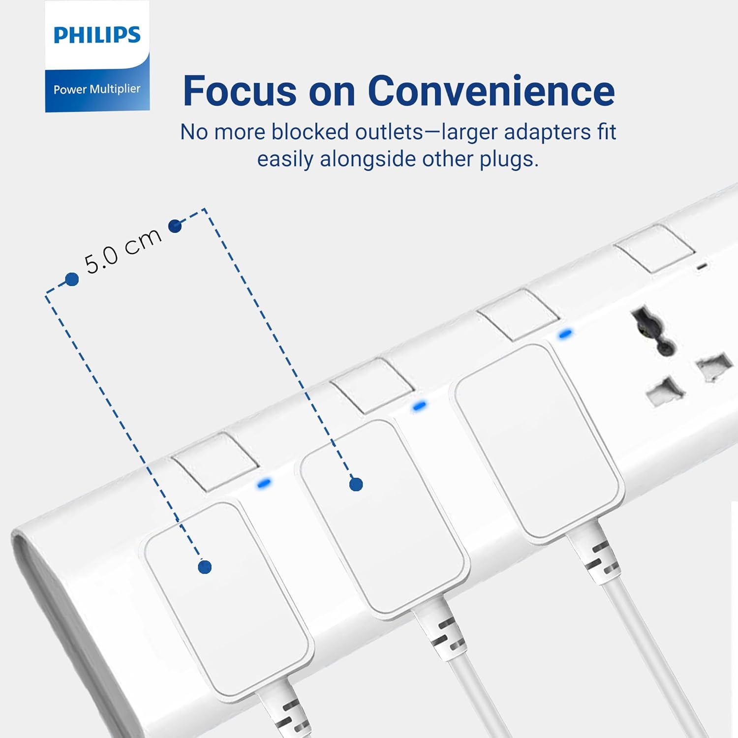 Philips 6-Way Universal Power Extension Cord 1.5M with Individual Switches - White